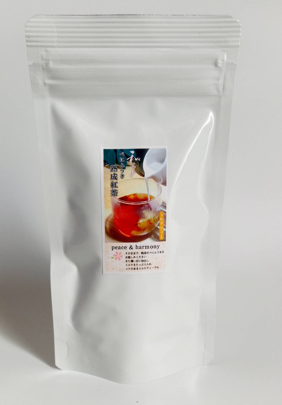 べにふうき夏摘み茶葉を5年熟成しました。熟した甘い果実の様な芳醇な香りがあり、やや渋みを感じますが、紅茶の渋みとして心地よ渋みです。そのまま淹れてべにふうきらしいフルーティーな香りを愉しむのも良し、ミルクティーにしてもおいしくいただけます。